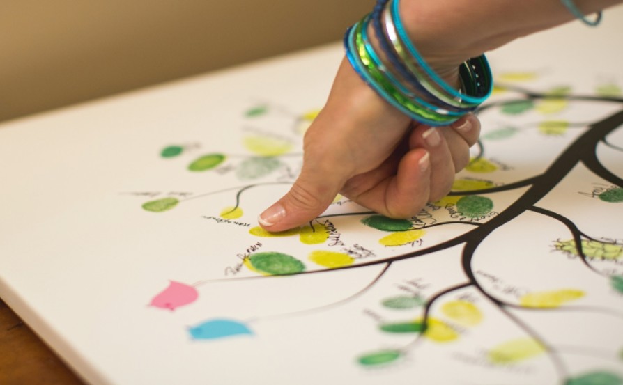Les couleurs différentes symbolisent les deux familles, les valeurs communes ou les sentiments. Le mélange des couleurs permet de créer une nouvelle entité qui favorise le respect des différences entre chacun.